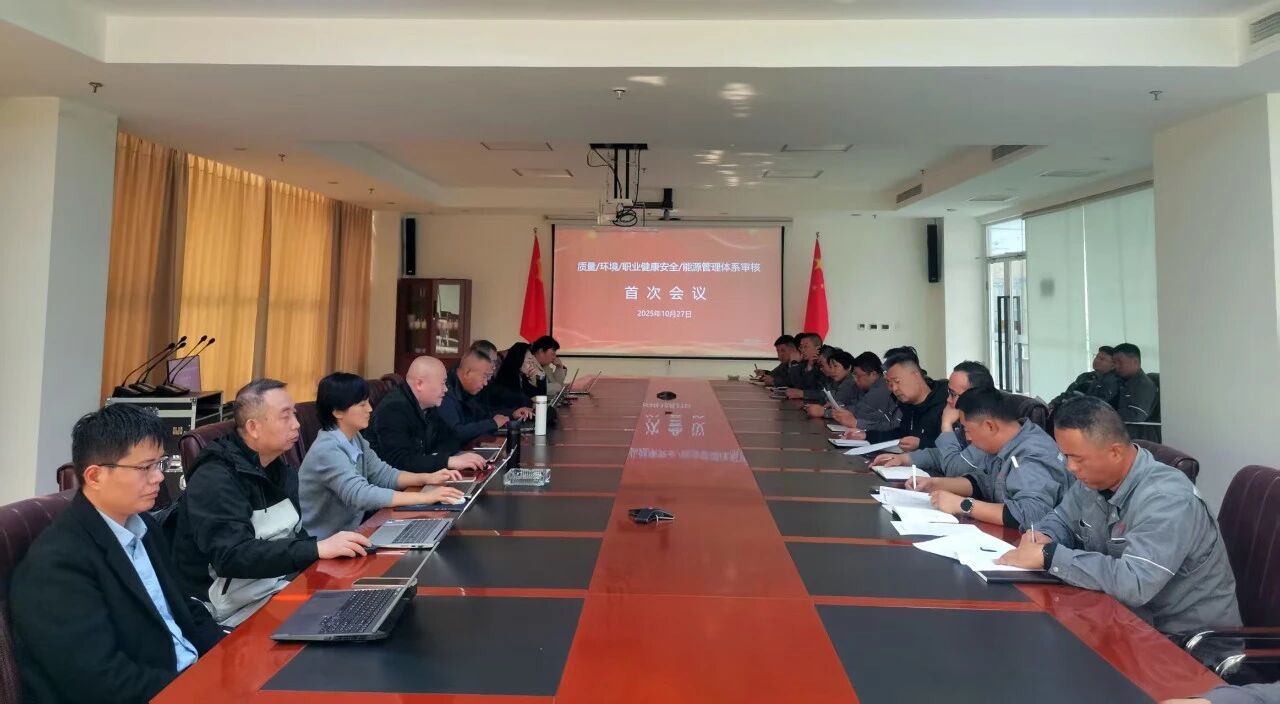 10月27日下午,公司质量、环境、职业健康安全和能源管理体系认证审核首次会议在综合办公楼三楼会议室召开。中国船级社认证有限公司马维杰组长一行8位专家出席会议,办公室主任董利伟,各单位体系审核负责人和内审员参加会议