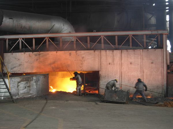 出铁是最为壮观的时候,如果顺利,每炉铁水要流6070分钟。炉口不畅通的时候,穿着阻燃服的炉前工戴着防护面罩,站立在1470多度的炉前疏通。出铁后,也是炉前工最累的时候,他们要做许多的准备和后续工作,如报罐、填写报表、清理铁水的残渣、残铁、备料、倒渣、验罐、现场定置等。大壕几百度的高温,暗藏着的险情不言而喻,如果稍一走神,便会有烧、烫伤的危险。一天下来,炉前工的衣服湿透了,脸上挂满了黑灰,身上也变得铁一样黑。